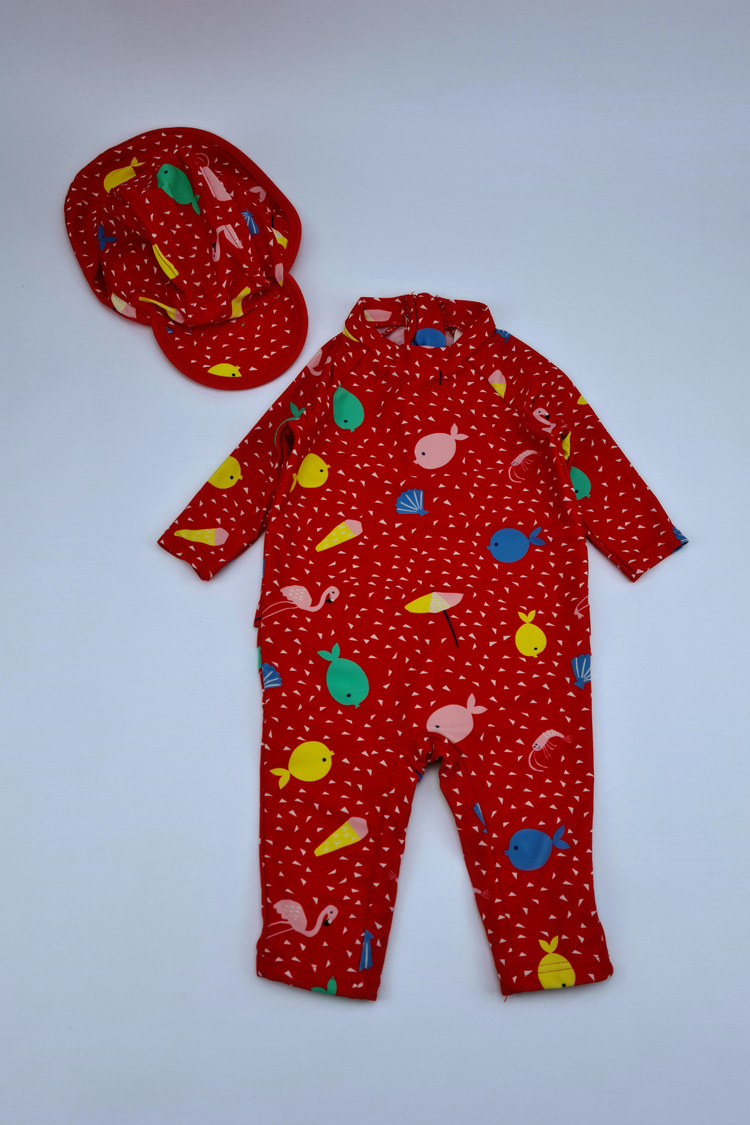 0-3m 2pc Sealife Print Swimsuit and Hat